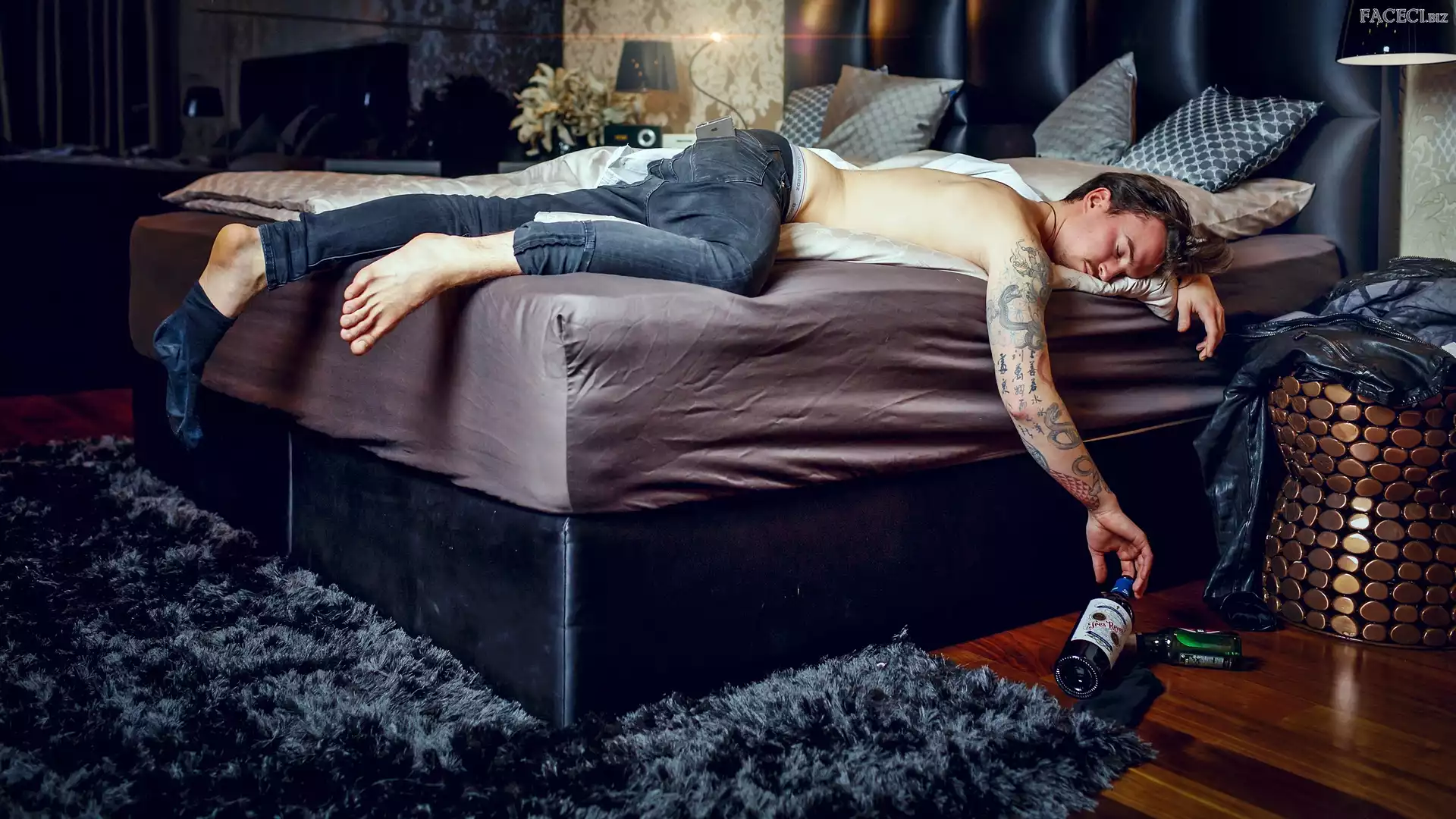 Sen, Łóżko, Mężczyzna, Śpiący, Tatuaż - faceci.biz